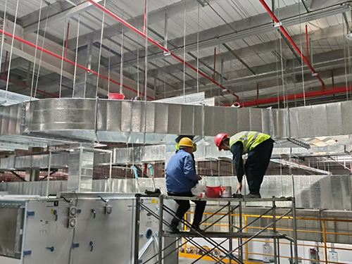 涂裝車間排煙管道施工現(xiàn)場