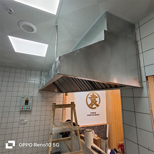 廚房不銹鋼煙罩,新風(fēng)管道施工現(xiàn)場