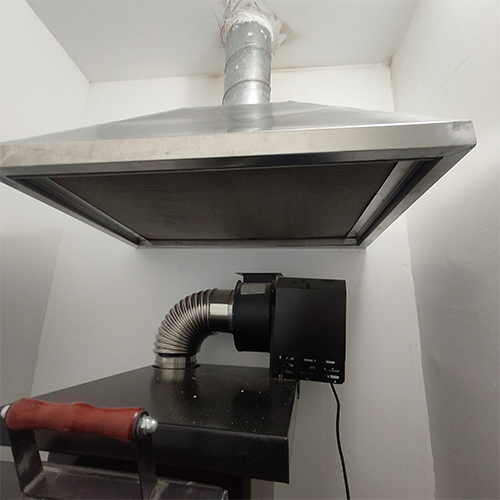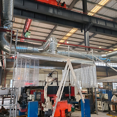 激光焊接排煙罩風管安裝施工現(xiàn)場