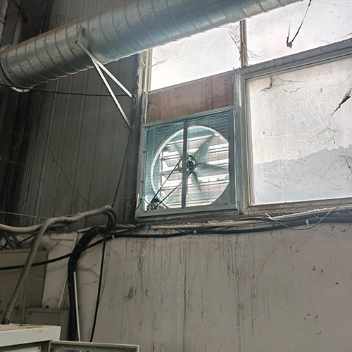 廠房通風(fēng)換氣降溫,負(fù)壓風(fēng)機(jī)安裝施工現(xiàn)場